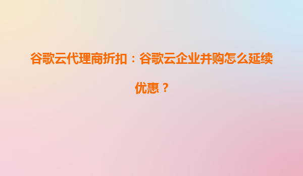2025-08-08谷歌云代理商折扣:谷歌云企业并购如何延续优惠? 一、谷歌云与代理商合作的核心优势 谷歌云(GoogleCloud)作为全球领先的云计算服务提供商,凭借其高性能基础设施、AI/ML工具和全球化网络覆盖,成为企业...