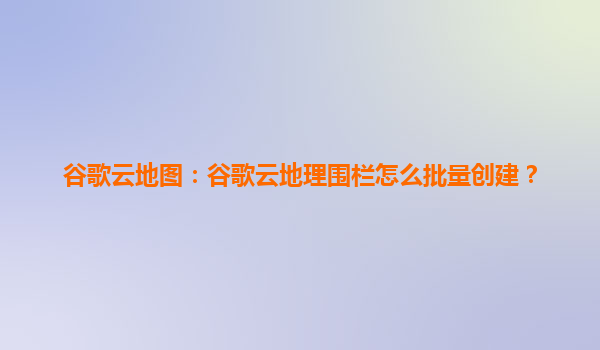 谷歌云地图:谷歌云地理围栏批量创建指南 一、什么是谷歌云地理围栏? 谷歌云地理围栏(Geofencing)是谷歌云平台提供的一项基于位置的服务,允许开发者通过API在电子地图上划定虚拟边界...