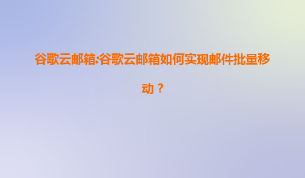 2025-08-07谷歌云邮箱高效管理:邮件批量移动功能详解 一、谷歌云邮箱的智能化邮件管理优势 谷歌云邮箱(Gmail)作为全球领先的企业级邮件服务,凭借其强大的云端存储能力和AI驱动的智能分类功能,为用户提供了高效的...