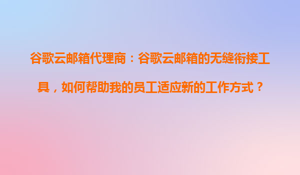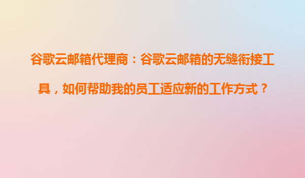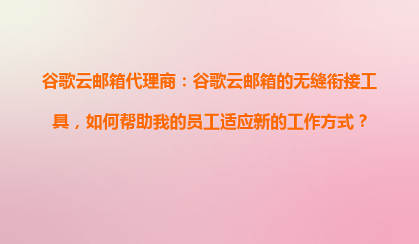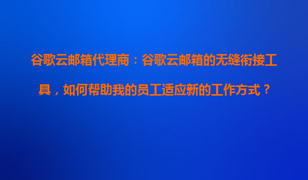 谷歌云邮箱代理商:谷歌云邮箱的无缝衔接工具,如何帮助我的员工适应新的工作方式? 一、为什么选择谷歌云邮箱作为企业协作平台? 谷歌云邮箱(GmailforBusiness)作为全球领先的企业级邮件服务...