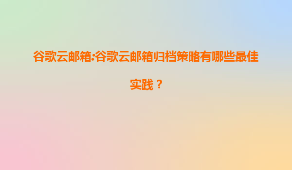 2025-08-03谷歌云邮箱归档策略最佳实践 一、谷歌云邮箱归档的核心价值 谷歌云邮箱(GoogleWorkspace)凭借其强大的云端存储能力和智能管理工具,为企业提供了高效的邮件归档解决方案。归档不仅能满足合规性要求...