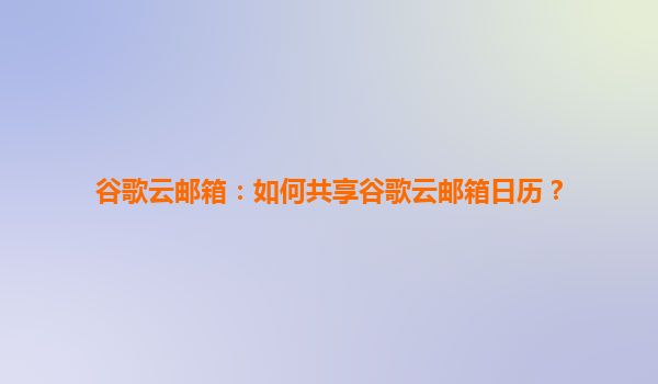2025-08-01谷歌云邮箱:如何共享谷歌云邮箱日历? 引言 在现代办公环境中,高效的时间管理和团队协作至关重要。谷歌云邮箱(Gmail)作为全球领先的企业邮箱服务之一,其内置的日历功能可以帮助用户轻松规划日程并...