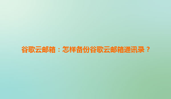 2025-07-31谷歌云邮箱:如何备份谷歌云邮箱通讯录 一、谷歌云邮箱的优势 谷歌云邮箱(Gmail)作为全球领先的电子邮件服务之一,凭借其强大的功能和稳定的性能,赢得了数亿用户的信赖。以下是谷歌云...