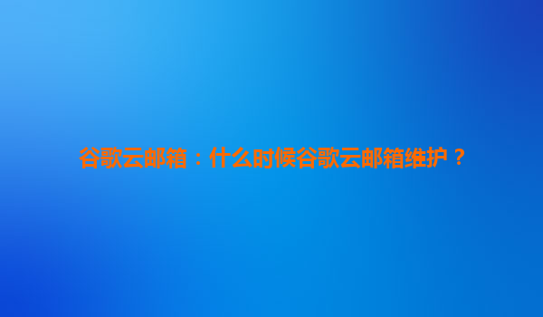 2025-07-29谷歌云邮箱维护时间解析与平台优势 一、谷歌云邮箱维护时间说明 谷歌云邮箱(Gmail及Workspace服务)的维护通常遵循以下原则: 计划性维护:谷歌会提前3-7天通过官方博客或管理员控制台通知,...