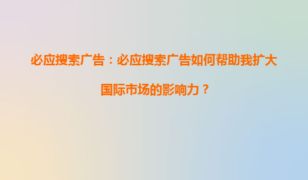 必应搜索广告:必应搜索广告如何帮助我扩大国际市场的影响力?