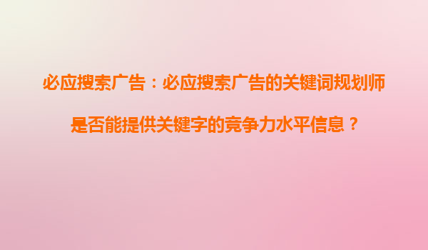 2025-10-26必应搜索引擎竞价推广优势解析及标题内容分析 一、必应搜索的市场定位与用户群体 必应(Bing)作为微软旗下的搜索引擎,在全球市场份额中占据重要地位,尤其在北美和欧洲地区拥有稳定的用户基础。其用户群...