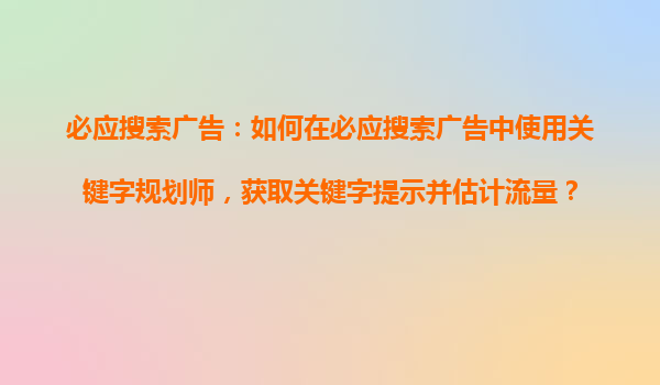 2025-10-24前言:搜索引擎竞价推广的核心价值 在当今数字化营销时代,搜索引擎竞价推广(SEM)已成为企业获取精准流量的高效手段。必应(Bing)作为全球第二大搜索引擎,虽市场份额不及谷歌,但其独特的用户群体和较低的...