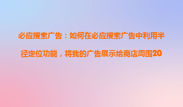 2025-10-23必应搜索引擎竞价推广优势与标题优化分析 一、必应搜索引擎的市场定位与用户特点 必应搜索引擎作为全球第二大搜索引擎,其在欧美市场占有率超过20%,尤其在企业级用户和高端消费群体中具有显著优势。必应用...