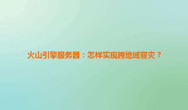 火山引擎服务器:如何实现跨地域容灾?