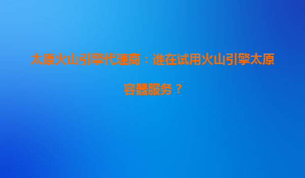 太原火山引擎代理商:谁在试用火山引擎太原容器服务?