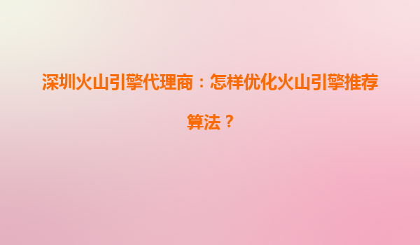 深圳火山引擎代理商:如何优化火山引擎推荐算法