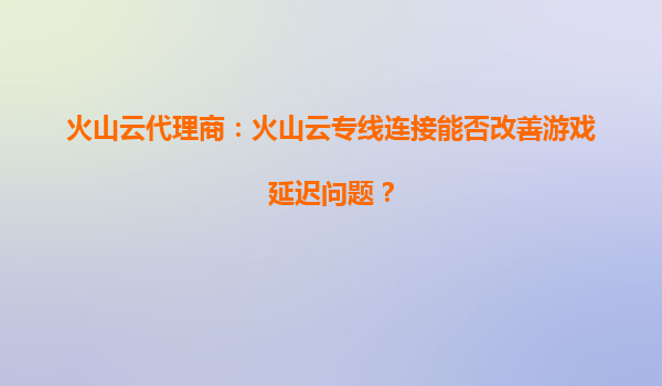 火山云代理商:火山云专线连接能否改善游戏延迟问题?