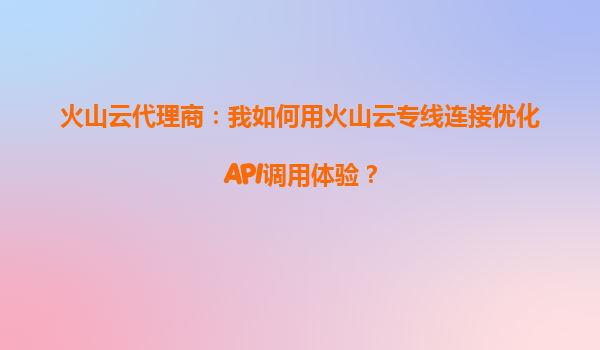 火山云代理商:如何用火山云专线连接优化API调用体验