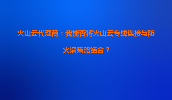 火山云代理商:将火山云专线连接与防火墙策略结合的最佳实践