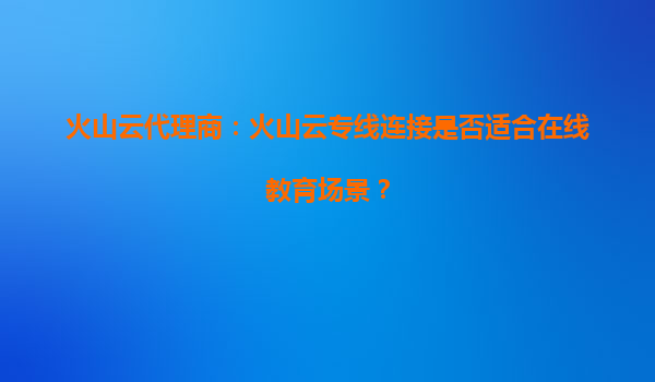 火山云代理商:火山云专线连接是否适合在线教育场景?