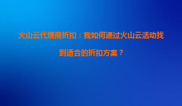火山云代理商折扣:如何通过火山云活动找到适合的折扣方案?