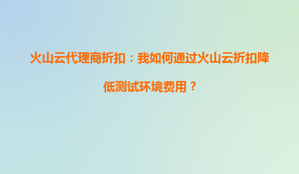 火山云代理商折扣:如何通过火山云降低测试环境费用