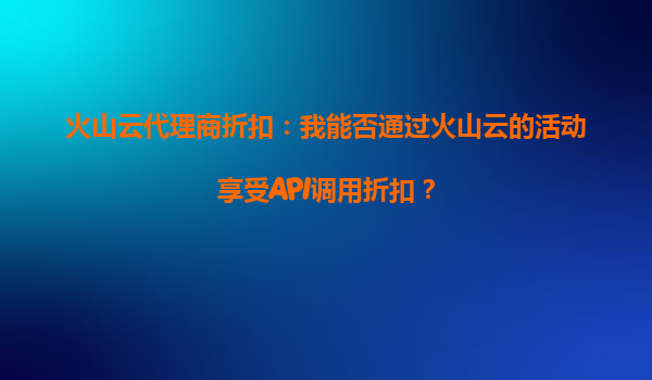 火山云代理商折扣:我能否通过火山云的活动享受API调用折扣?