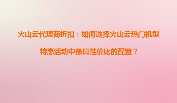 在云计算市场竞争日益激烈的今天,火山云凭借其高性能、稳定可靠的服务和极具竞争力的价格赢得了众多企业的青睐。特别是通过火山云代理商折扣,用户可以享受到更优惠的价格。本文将为您详细介绍如何在火山云热门机型特惠活动中选择最具性价比的配置,并分析火山云的核心优势。