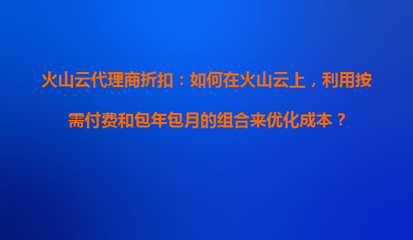 火山云代理商折扣:如何在火山云上,利用按需付费和包年包月的组合来优化成本?