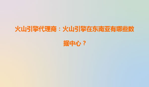 火山引擎(VolEngine)作为字节跳动旗下的云服务平台,近年来持续加码全球化布局,尤其在东南亚地区建立了多个核心数据中心,覆盖以下关键区域: