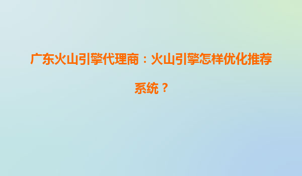 火山引擎如何优化推荐系统?广东代理商视角解析