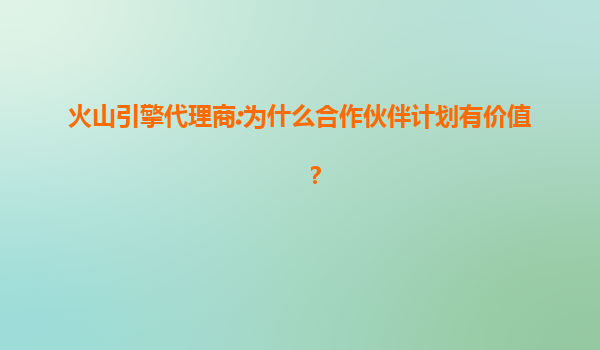 火山引擎代理商:为什么合作伙伴计划有价值?