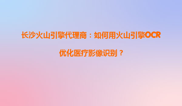 长沙火山引擎代理商:如何用火山引擎OCR优化医疗影像识别?