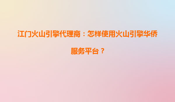 江门火山引擎代理商:怎样使用火山引擎华侨服务平台?