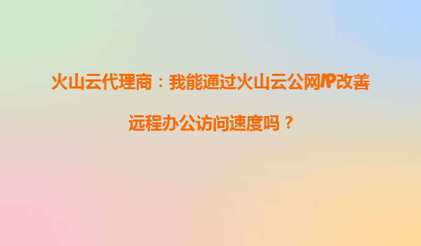 火山云代理商:我能通过火山云公网IP改善远程办公访问速度吗?