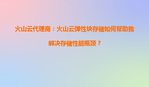火山云弹性块存储:突破存储瓶颈的智能解决方案