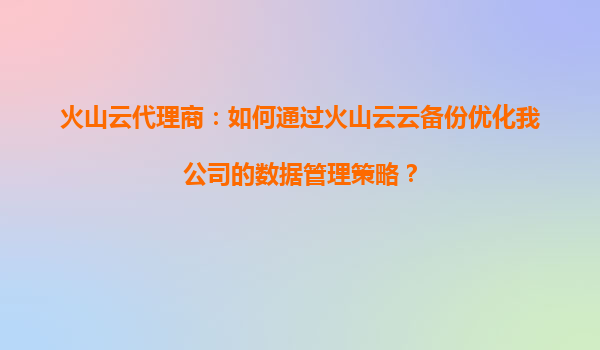 火山云代理商:如何通过火山云云备份优化我公司的数据管理策略?