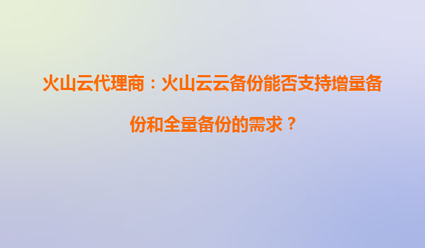 火山云代理商指南:火山云备份如何满足增量与全量备份需求