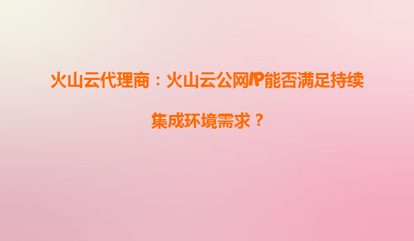 火山云代理商:火山云公网IP能否满足持续集成环境需求?
