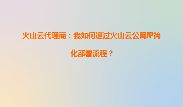 火山云代理商:我如何通过火山云公网IP简化部署流程?