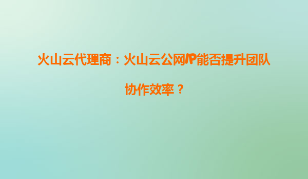 火山云代理商:火山云公网IP如何助力团队协作效率提升?