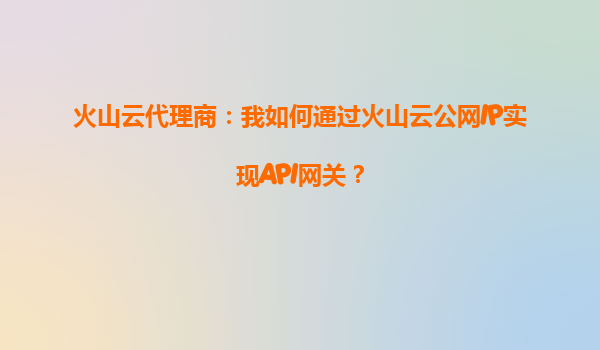 火山云代理商指南:如何通过公网IP实现API网关部署