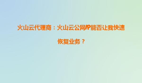 火山云代理商:火山云公网IP能否让我快速恢复业务?