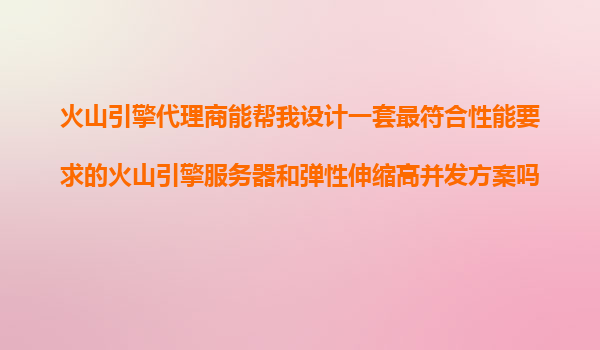 火山引擎代理商:量身定制高性能服务器与弹性伸缩方案