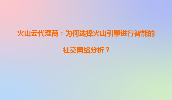 火山云代理商:为何选择火山引擎进行智能社交网络分析?