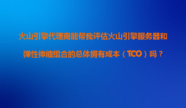 2025-11-19火山引擎代理商如何帮您评估服务器与弹性伸缩的总体拥有成本(TCO) 引言 在数字化转型浪潮中,企业上云已成为不可逆的趋势。然而,如何选择性价比最优的云服务方案,尤其是合理评估总体拥有成本(TotalCo...