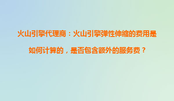 2025-10-28火山引擎代理商:火山引擎弹性伸缩的费用是如何计算的,是否包含额外的服务费? 弹性伸缩服务的核心优势 火山引擎作为字节跳动旗下的云服务平台,其弹性伸缩(AutoScaling)服务凭借智...