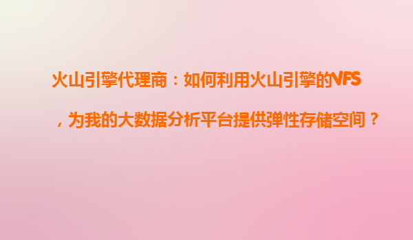 2025-10-28火山引擎代理商:如何利用火山引擎的VFS,为大数据分析平台提供弹性存储空间? 引言 在当今数据驱动的时代,大数据分析平台的存储需求日益增长,传统存储方案往往难以满足弹性扩展、高性能和低成本的需求...