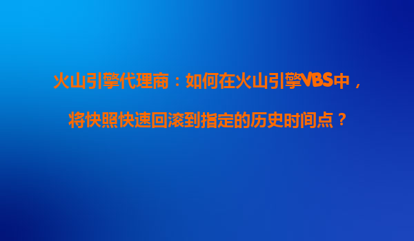 2025-10-28火山引擎代理商指南:如何在火山引擎VBS中快速回滚快照至历史时间点 一、火山引擎VBS的核心优势 火山引擎云服务器(VolcanoEngineVirtualBlockStorage,VBS)作为企业级云存储服务,在数...