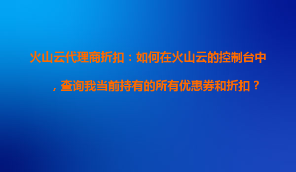 如何查询火山云代理商折扣及优惠券? 火山云作为国内领先的云计算服务商,不仅提供稳定高效的云服务,还通过灵活的折扣政策和优惠券体系帮助用户降低成本。对于代理商或企业用户而言,掌握如何查询当前持有的优...