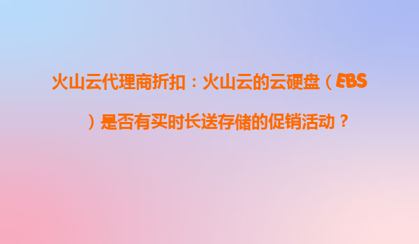2025-10-28火山云代理商折扣:火山云EBS买时长送存储促销活动解析 一、火山云EBS核心优势与促销活动 火山云作为字节跳动旗下云计算品牌,其云硬盘(EBS)以高性能、低延迟和稳定可靠著称。针对企业存储成本优化需...