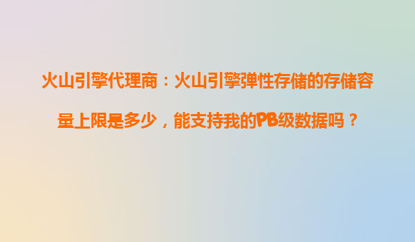 2025-10-28火山引擎代理商答疑:火山引擎弹性存储的容量上限与PB级数据支持能力解析 一、火山引擎弹性存储的核心优势 火山引擎作为字节跳动旗下的企业级技术服务平台,其弹性存储服务(VeES)依托云计算技术,具...
