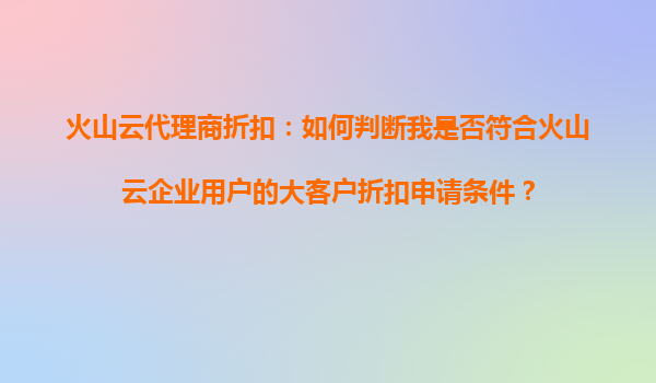 2025-10-28火山云代理商折扣:如何判断我是否符合火山云企业用户的大客户折扣申请条件? 一、火山云的核心优势 火山云作为字节跳动旗下的云计算服务品牌,凭借其强大的技术背书和全球化基础设施布局,为企业用户提供...