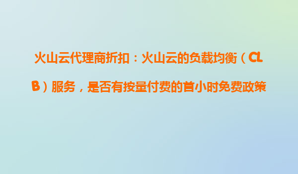 2025-10-28火山云代理商折扣:火山云负载均衡(CLB)服务按量付费首小时免费政策解析 1.火山云负载均衡(CLB)服务简介 火山云负载均衡(CloudLoadBalancer,CLB)是火山引擎提供的高性能、高可用的流量分发...