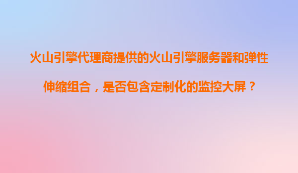 2025-11-18火山引擎代理商服务优势解析:定制化监控大屏与弹性伸缩的完美结合 一、火山引擎代理商的核心价值 火山引擎作为字节跳动旗下的云计算服务平台,凭借其在AI、大数据和全球化基础设施领域...